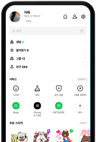 라인의 각종 서비스 및 스티커와 같은 다양한 정보와
