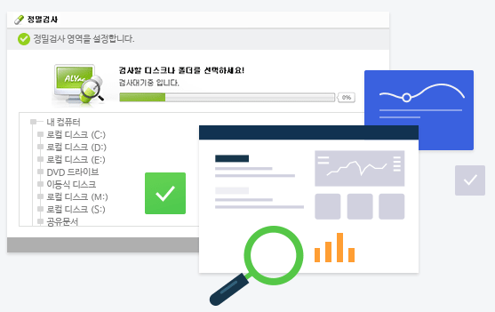시스템 정밀검사를 통해, 활동하지 않고 숨어있는 악성코드까지 탐지 및 치료
