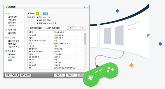 게임 실행 시 알약 업데이트, 알림 등 설정을 게임 환경에 자동으로 최적화